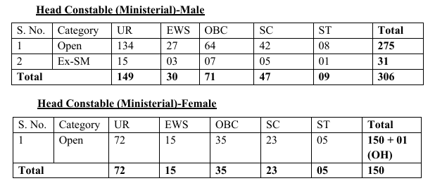 Delhi Police Head Constable (Ministerial) Revised Vacancies
