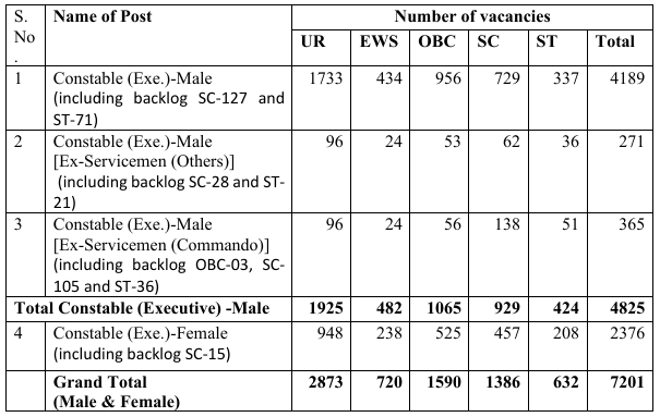 Delhi Police Constable (Executive) Revised Vacancies
