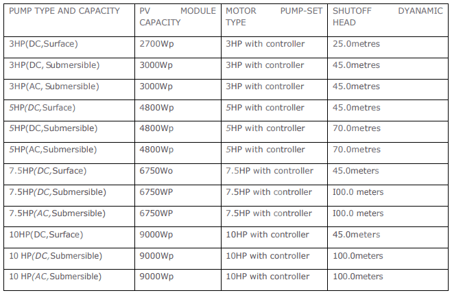 - आवश्यकतानुसार सोलर पंप की क्षमता एवं प्रकार का चयन करें।