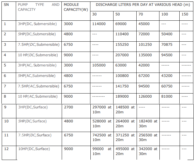 | सौर पंप का प्रकार और क्षमता | देय राशि |